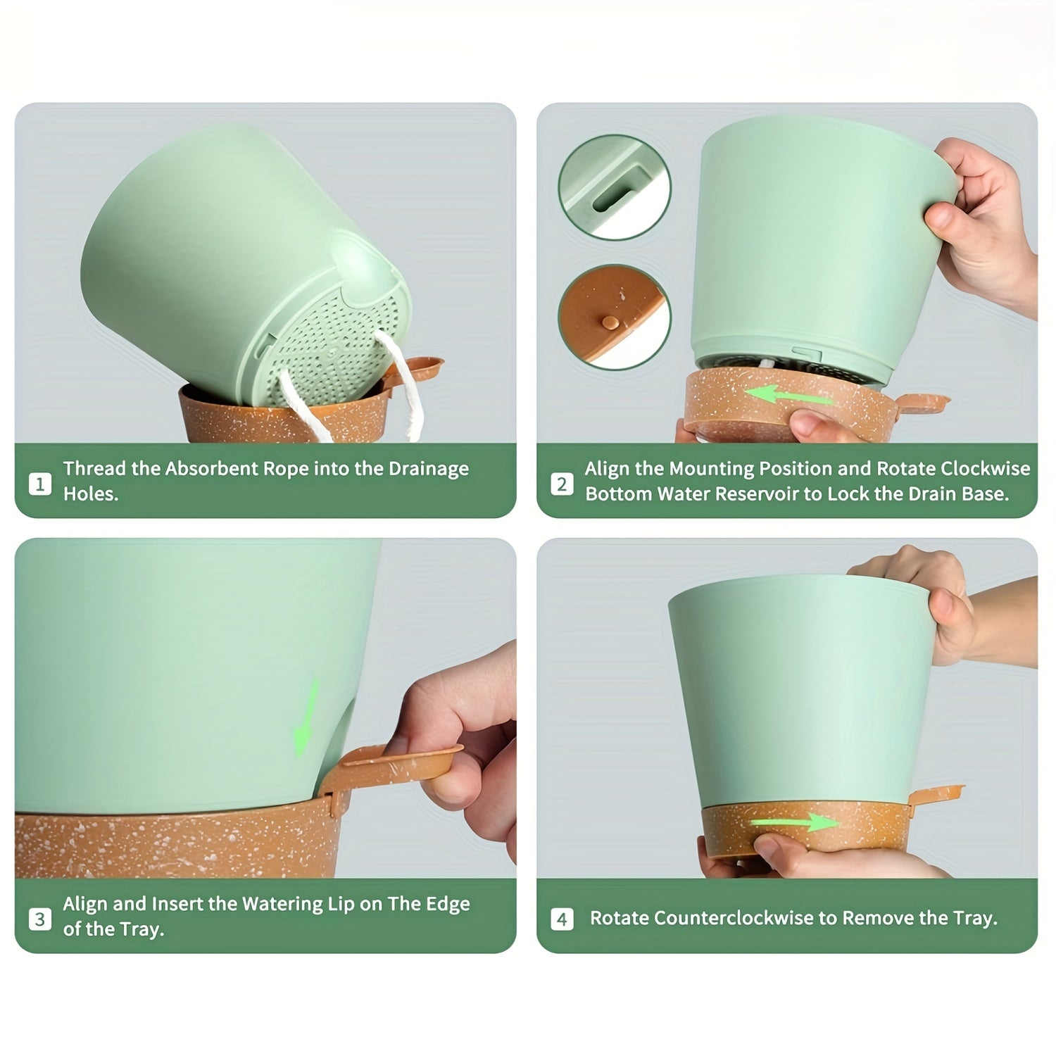 Automatic | Watering Olisx-H1405-5 Set of 5 Automatic Watering Flower Pots | Modern African Violet Pots with Drainage Holes And Trays | Suitable for Home Gardens, 5 Inches (Approximately 12.7 Cm)