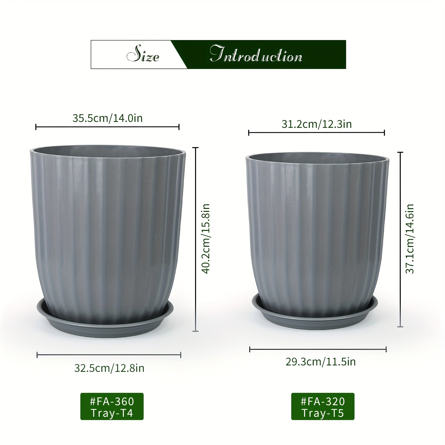Diameter 14 Inches And 12.3 Inches Different Size Large Planter with Drainage Hole And Saucer, Thickened Planter for Indoor Outdoor Plants